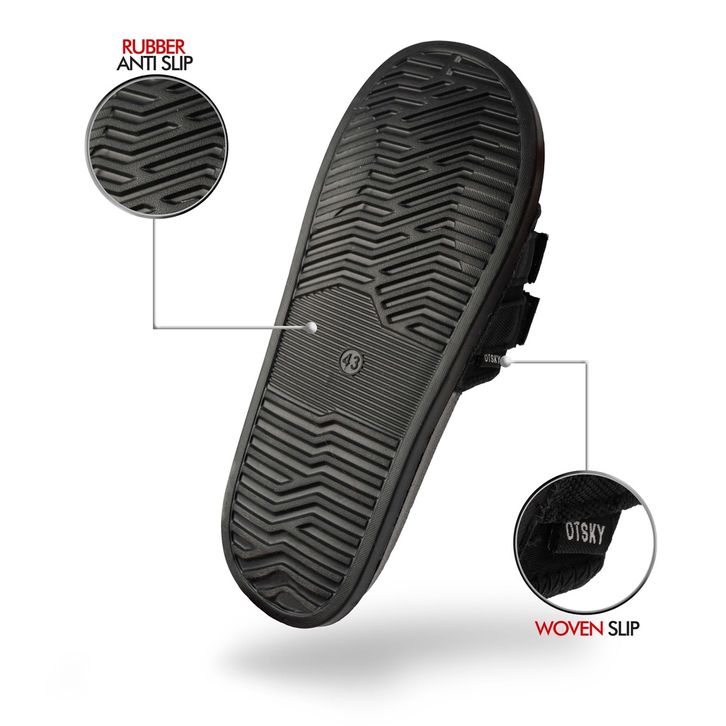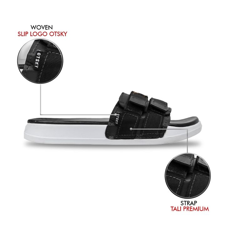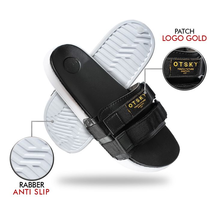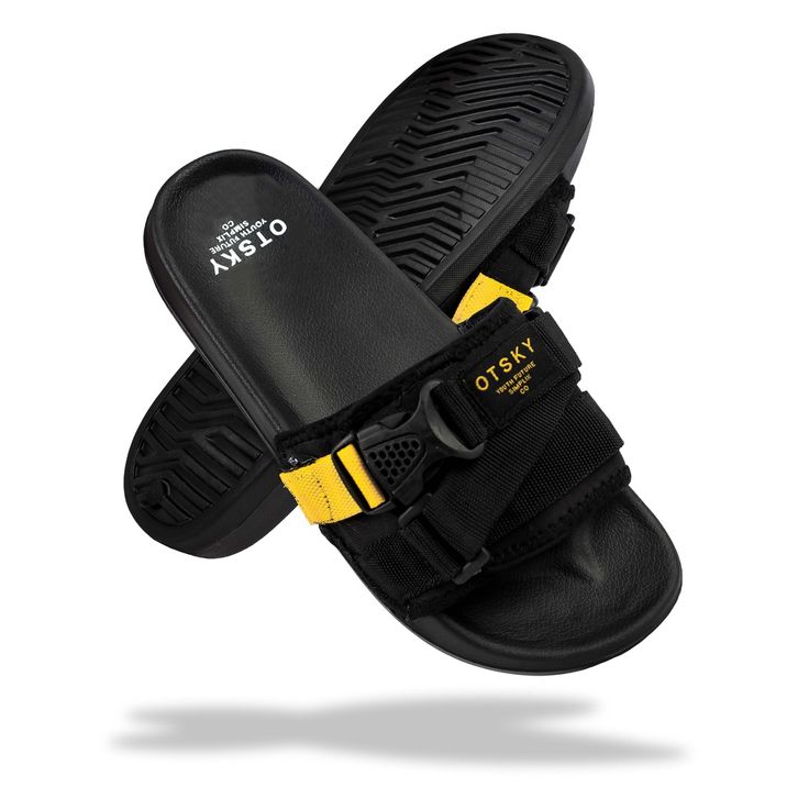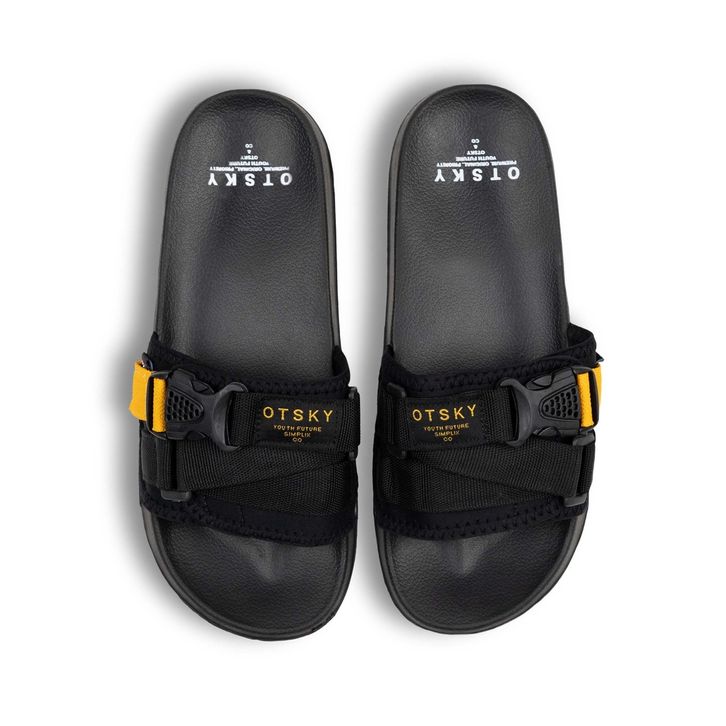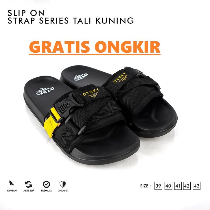 Sandal Slide Slip on Strap Series Tali Kuning Black - Otsky