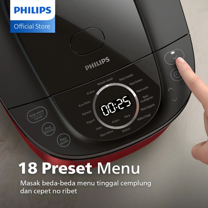 Philips Digital Rice Cooker Magicom 1.8 L 3000 Digital Series HD4812/30 Merah