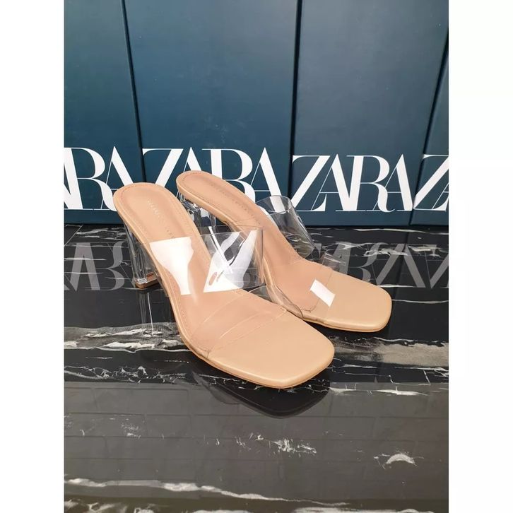 Sandal sepatu zara transparan vinyl heels 6cm dan 9cm shoes premium import