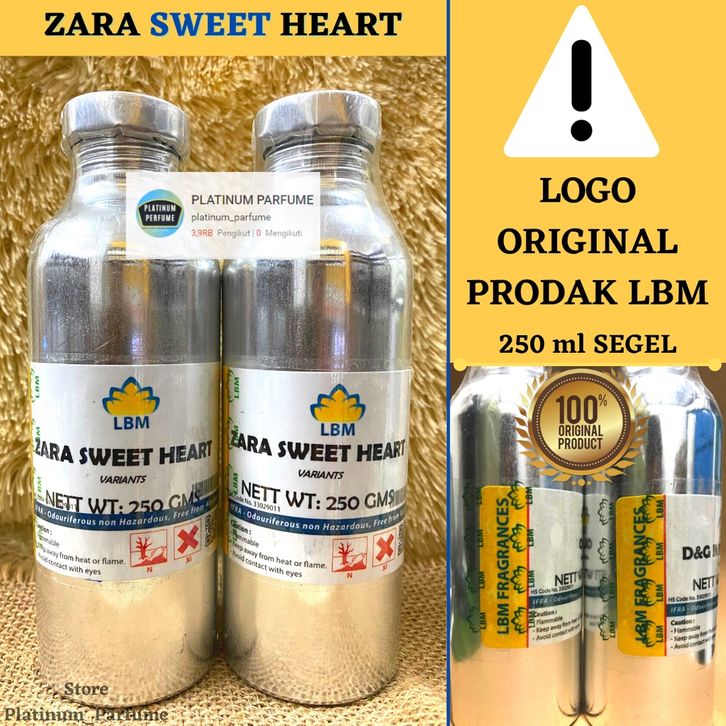 Bibit parfum refill ZARA SWEET HEART By LBM Kemmasan 250 mili Segel Alumunium