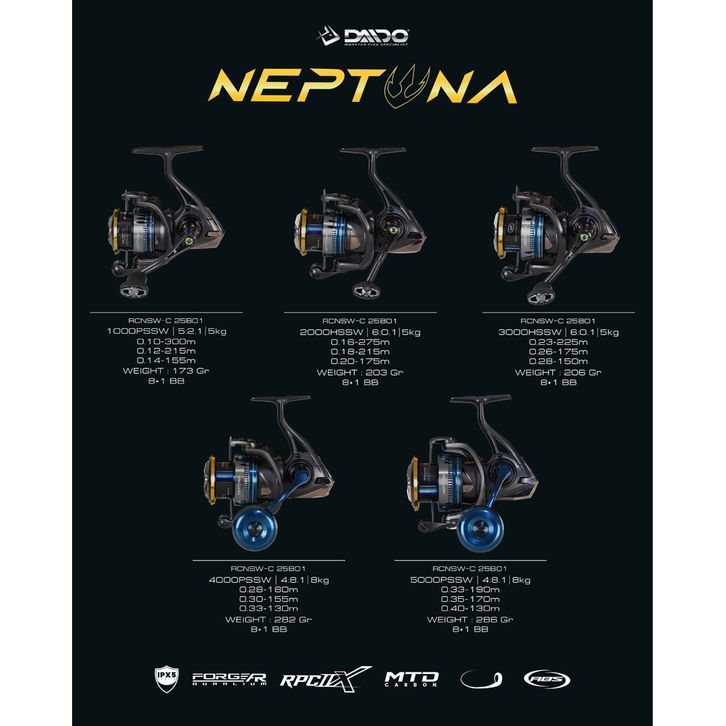 Reel Daido Neptuna Saltwater 9 Ball Bearing Reel Pancing 1000 PSSW - 5000 PSSW