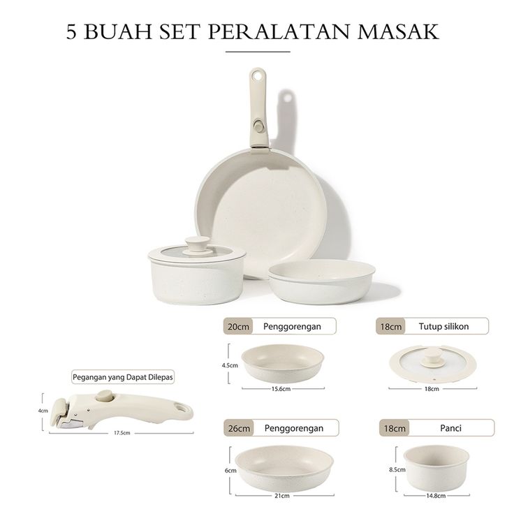 Carote Granit Putih Antilengket Peralatan Masak Karoten Dengan Pegangan Yang Dapat Dilepas Untuk Semua Kompor PFOA Tidak