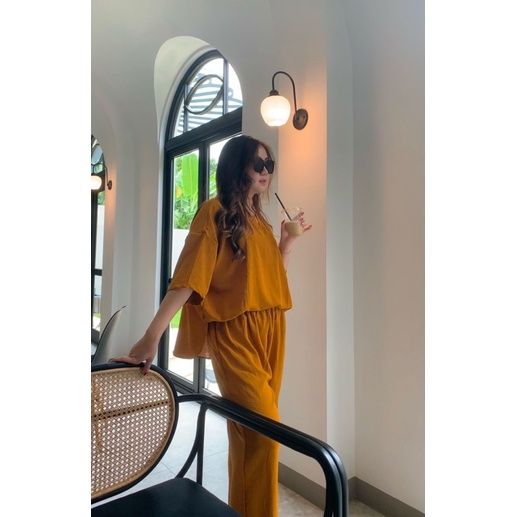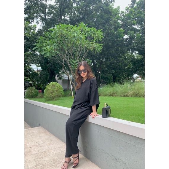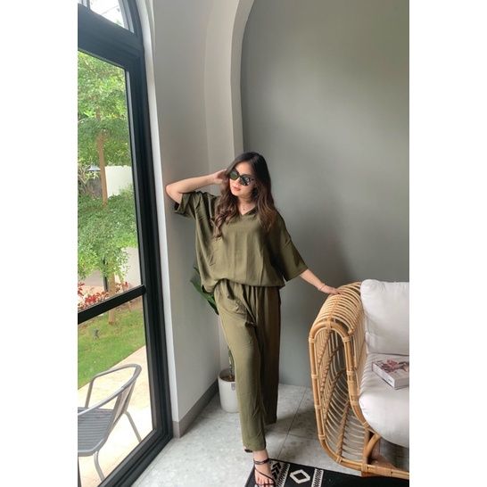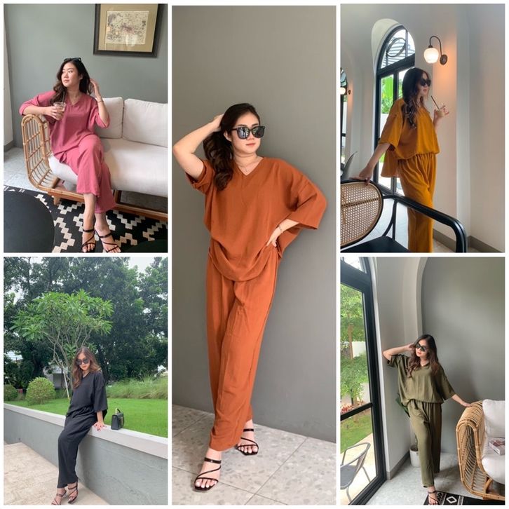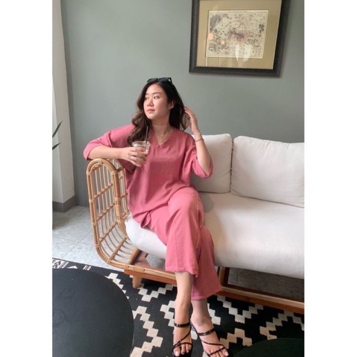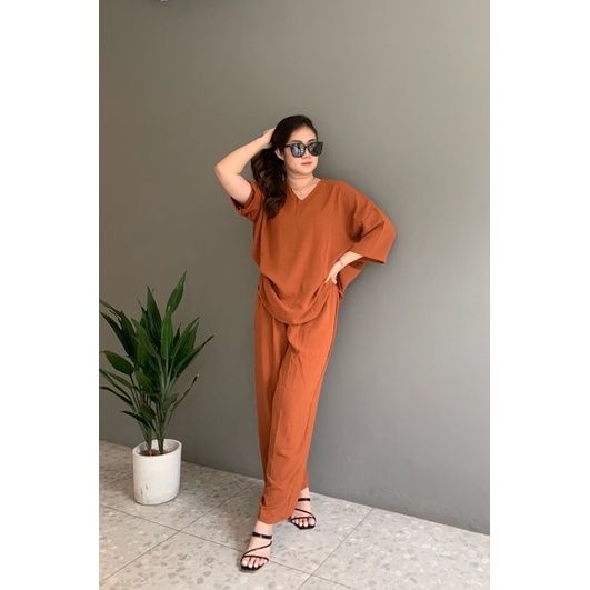 Setelan Cp wanita jumbo - oneset oversize v neck - set dailywear wanita crinkle
