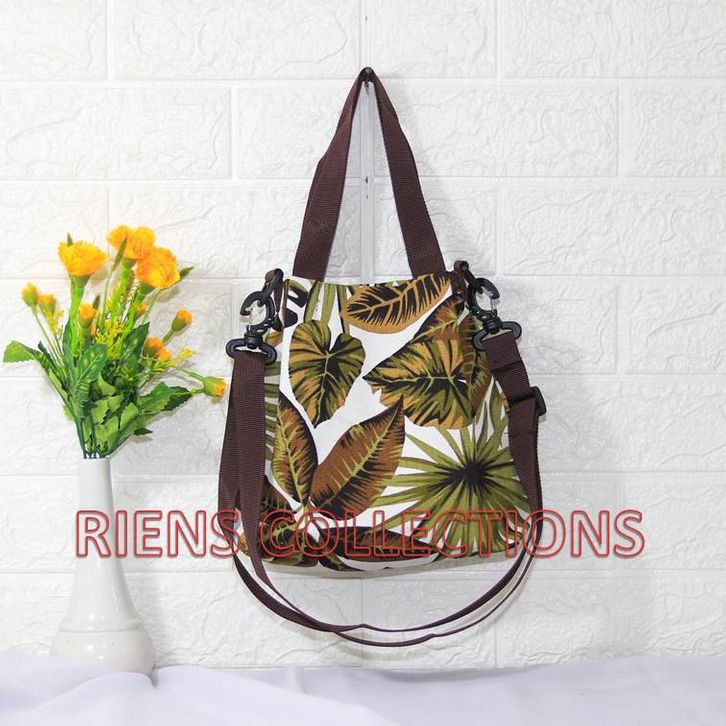 SLING BAG TAS SELEMPANG KANVAS MOTIF ADENIA COKLAT RIENS COLLECTIONS. TAS KANVAS JOGJA