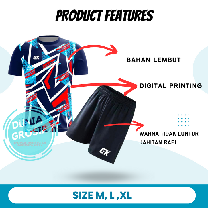 1 SET PAKAIAN OLAHRAGA JERSEY FUTSAL JERSEY BADMINTON JERSEY PRINTING DEWASA TR 61