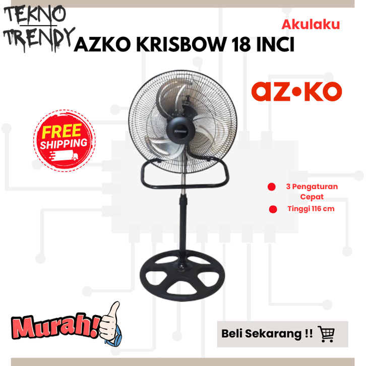 Kipas Angin Berdiri AZKO Krisbow 18 Inci Industrial 3 In 1 Standing Fan Kipas Lantai Aluminium Official Store