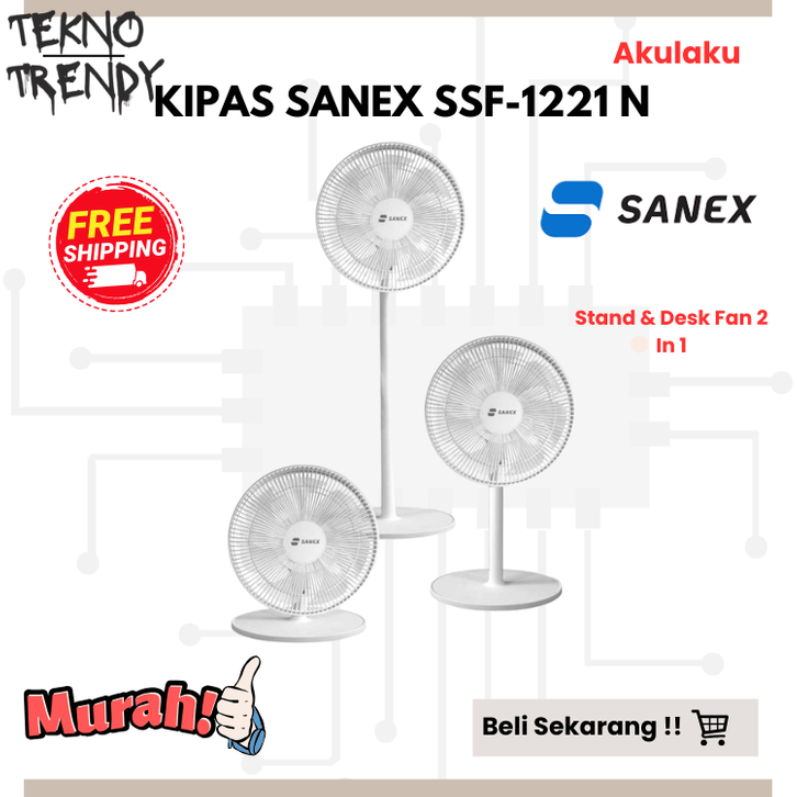 Kipas Angin Berdiri SANEX SSF-1221 N 12Inch 2IN1 Stand & Desk Fan 7 Baling Minimalis Transparan Remote Murah