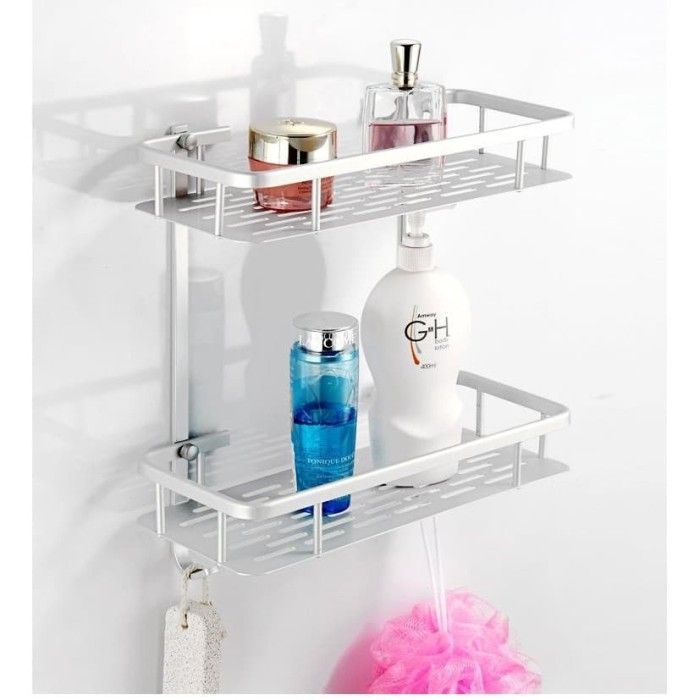 RAK DINDING KAMAR MANDI SUSUN DUA TEMPAT SABUN SHAMPO GANTUNGAN HANDUK