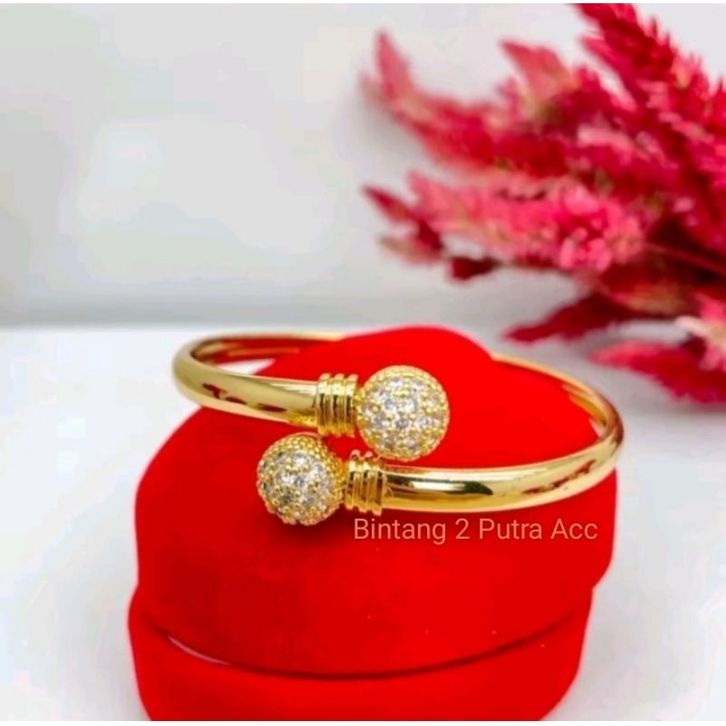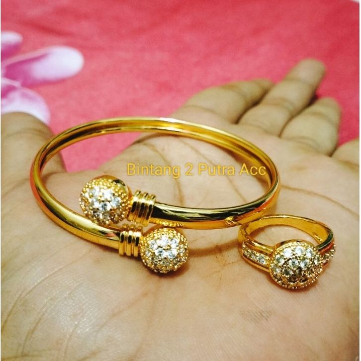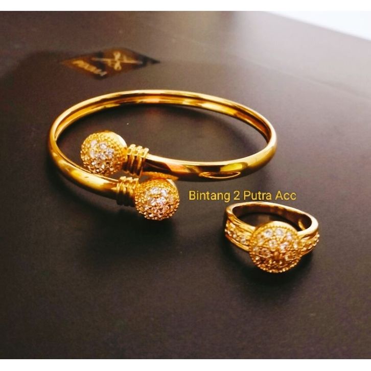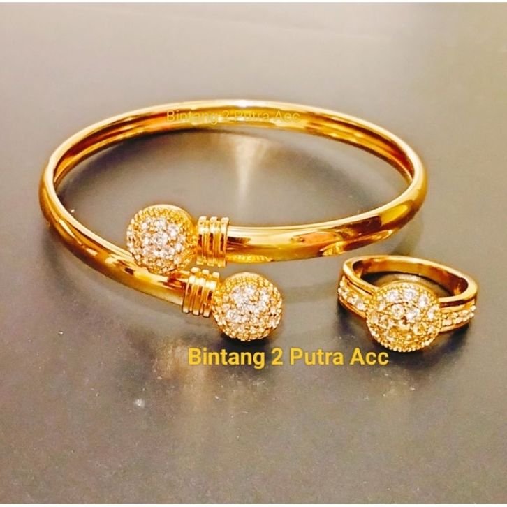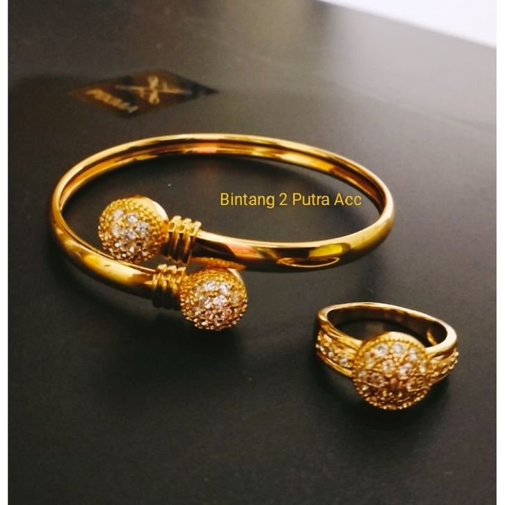 Gelang Titanium Gold Pree Cincin full Permata Perhiasan Wanita Dewasa Anti Karat