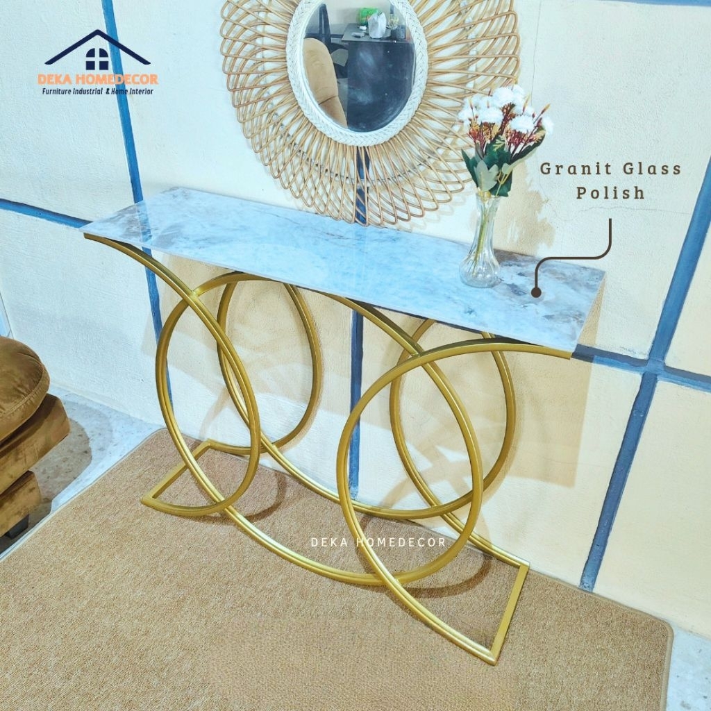 Meja Konsol Minimalis MOLA / Meja Console Aesthetic Motif Marmer Gold / Meja Tamu Besi Industrial