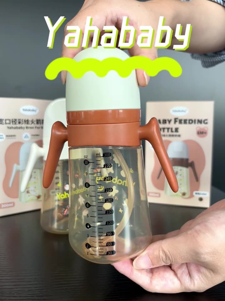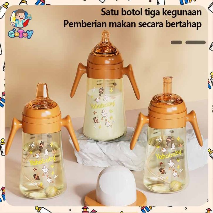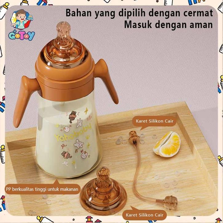 YAHABABY Botol Bayi Susu Dengan Antibakteri Silikon Dot Bayi Botol Handle Lucu Motif Botol Feeding Bottle 300ML