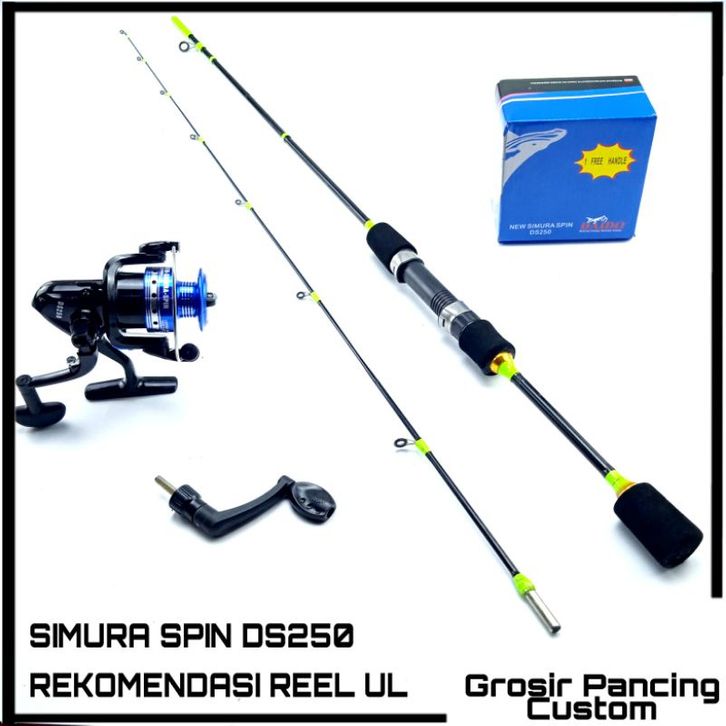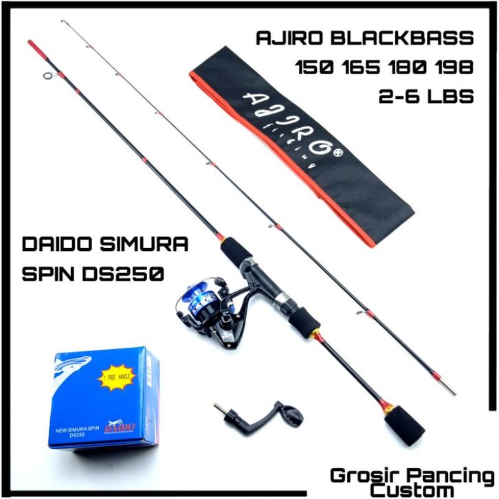 satu set joran pancing ul ultralight lentur fiber solid murah kuat ajiro blackbass uk 150 165 180 198 cm reel simura ato