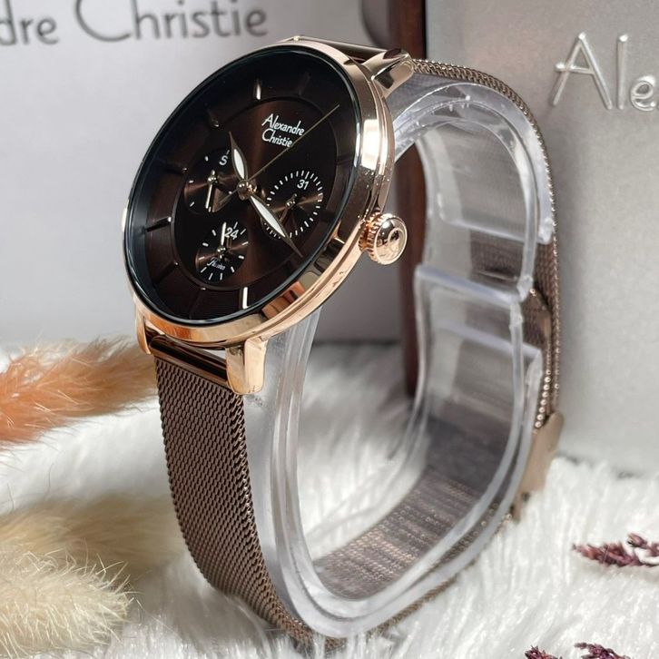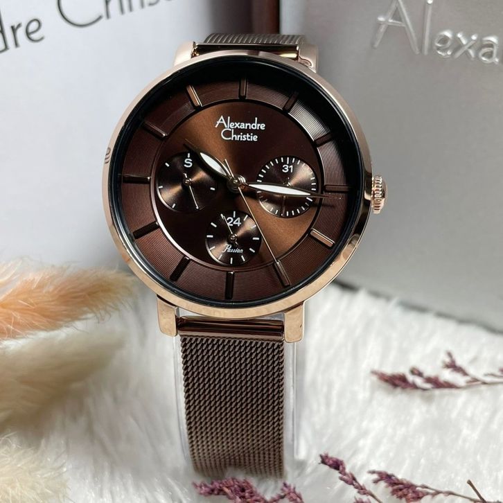 Jam Tangan Alexandre Christie Wanita Rosegold Brown Original Garansi Resmi