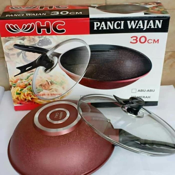 Panci Wajan Granite + Tutup Kaca - Wok Pan 30 Cm - HC Pan