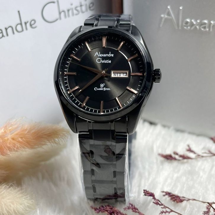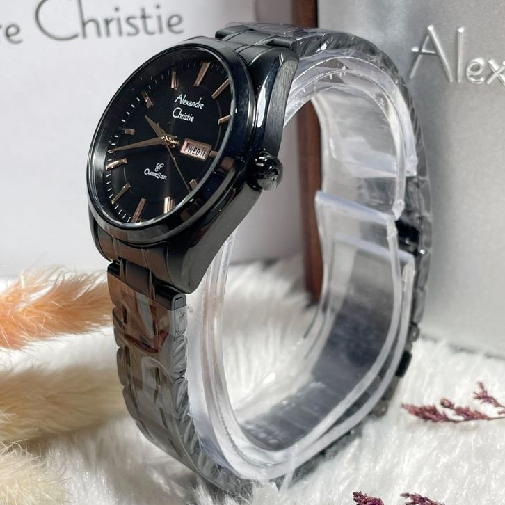 Jam Tangan Alexandre Christie Wanita Black Dial Rosegold Original Garansi Resmi
