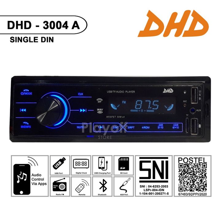 Head Unit Single Din Mp3 Bluetooth Tape Mobil DHD-3004 A/B