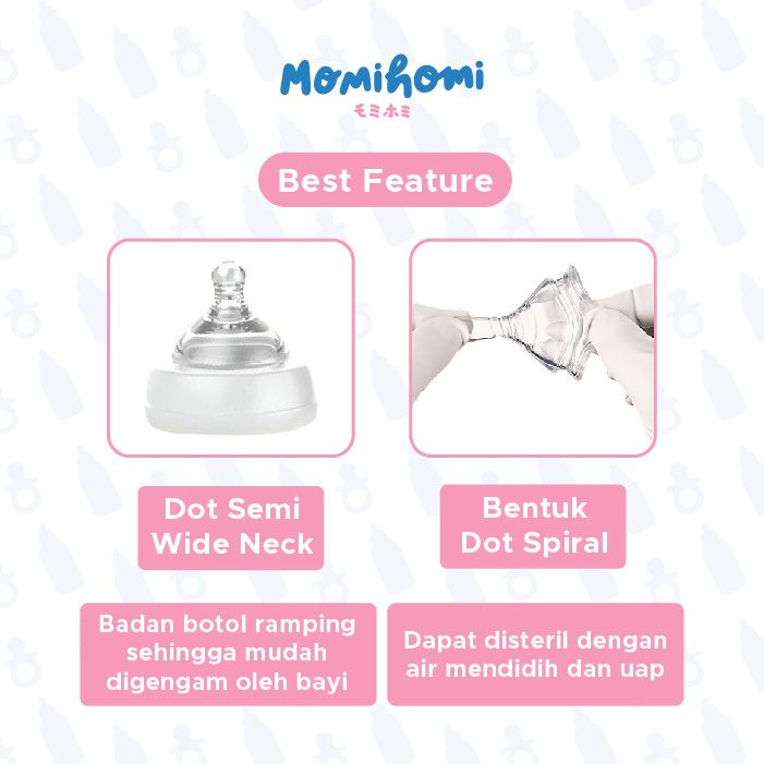 Botol Susu Bayi MOMIHOMI 180ml Wideneck Wide Neck Dot Baby Bottle Baby PP Tahan Panas Anti Col-ic MURAH TERBARU