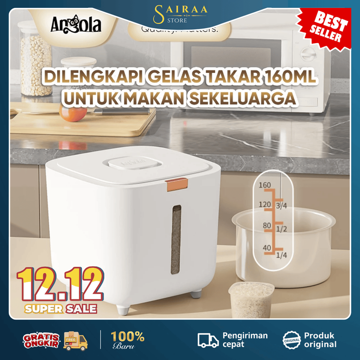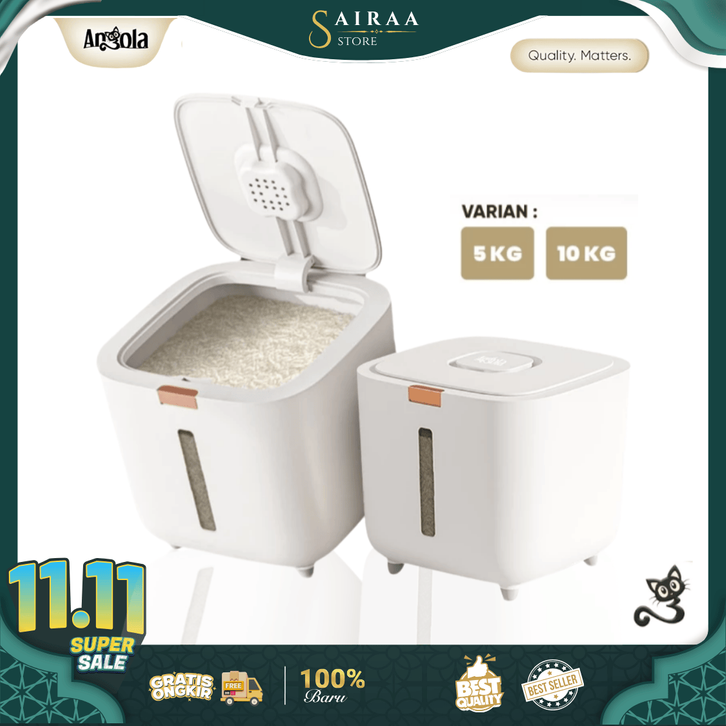 ANGOLA DISPENSER BERAS BEST SELLER TERBARU 5KG - 10KG TEMPAT PENYIMPANAN BERAS FOOD GRADE ANTI KUTU