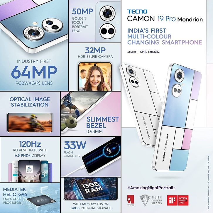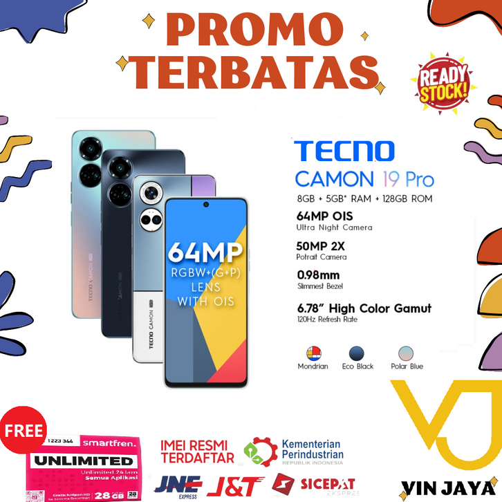 TECNO CAMON 19 Pro 8+5GB* +128GB [Night Camera 64MP+50MP With OIS+EIS] GARANSI RESMI