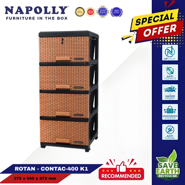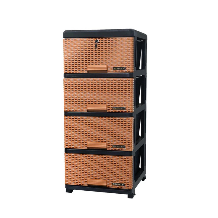 LEMARI PLASTIK LACI NAPOLLY 4 SUSUN JUMBO MOTIF RATTAN DRAWER ROTAN - CONTAC-400 K1