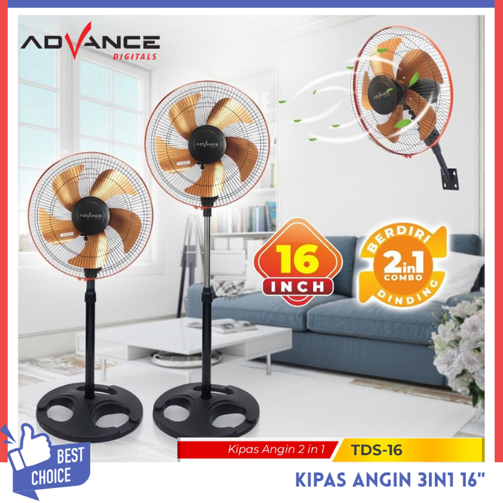 Kipas Angin Berdiri Dinding 2in1 Advance 16 Inch Tds16 Besi Tornado Kencang Murah Ori Sni Tinggi Fleksibel