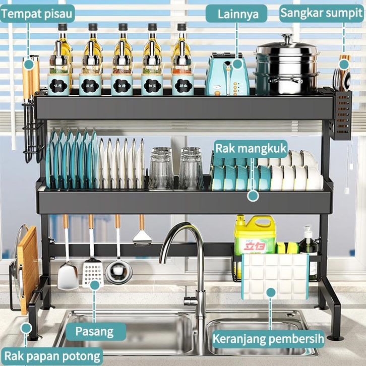 Rak Wastafel Dapur Rak Cuci Piring Multifungsi Stainless Steel Rak Dapur