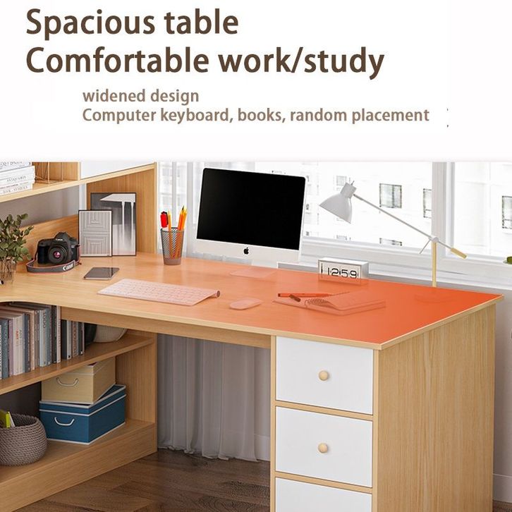 MEJA KANTOR/MEJA BELAJA SUDUT DENGAN RAK BUKU/MEJA TULIS/MEJA KERJADAN RAK SERBAGUNA MULTIFUNGSI/MEJA KOMPUTER/RAK BUKU