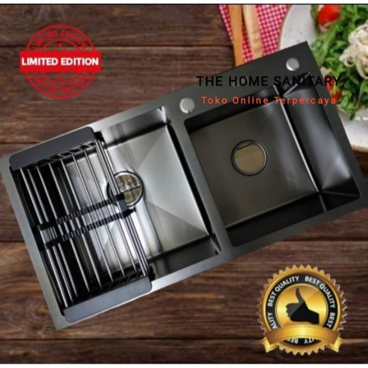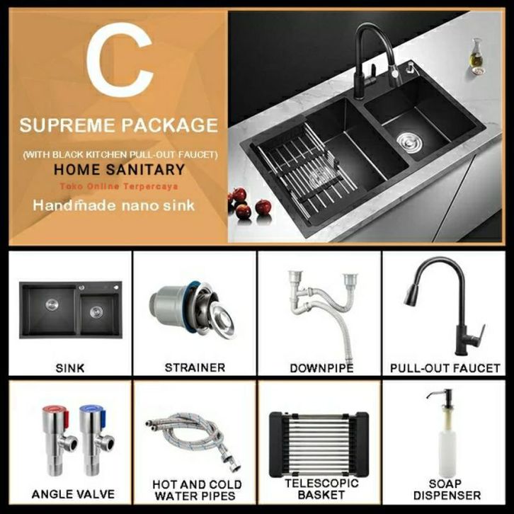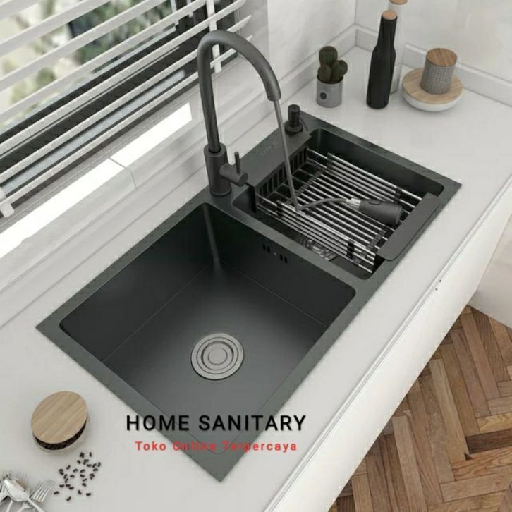 Paket Lengkap Kitchen Sink JKM 8245 BLACK Paket Kran Tarik Stainless Hitam