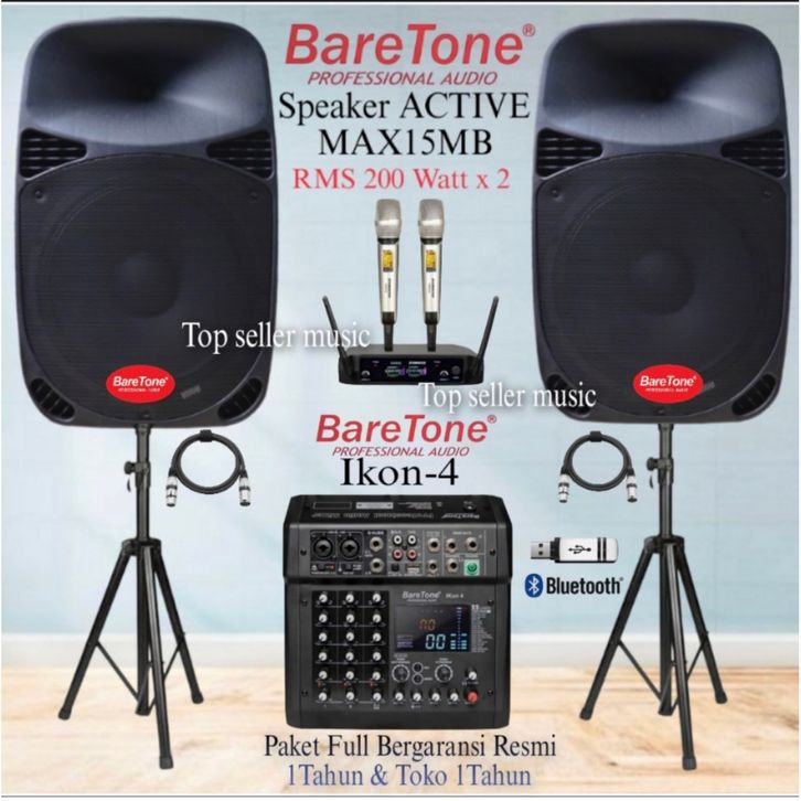 PAKET SOUND SPEAKER AKTIF 15 INCH BARETONE MAX15MB MIXER IKON-4 MIC 2