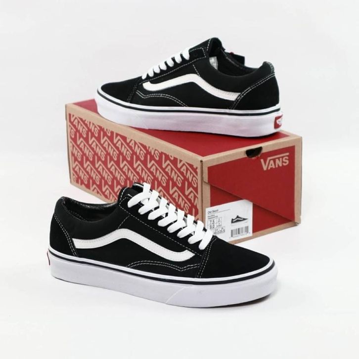SEPATU UNISEX VANS OLD SKOOL CLASSIC BLACK WHITE HIGH QUALITY FREE KAOS KAKI