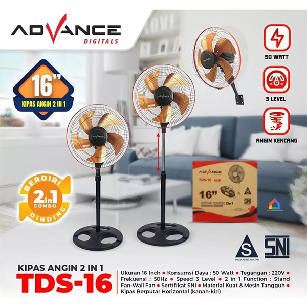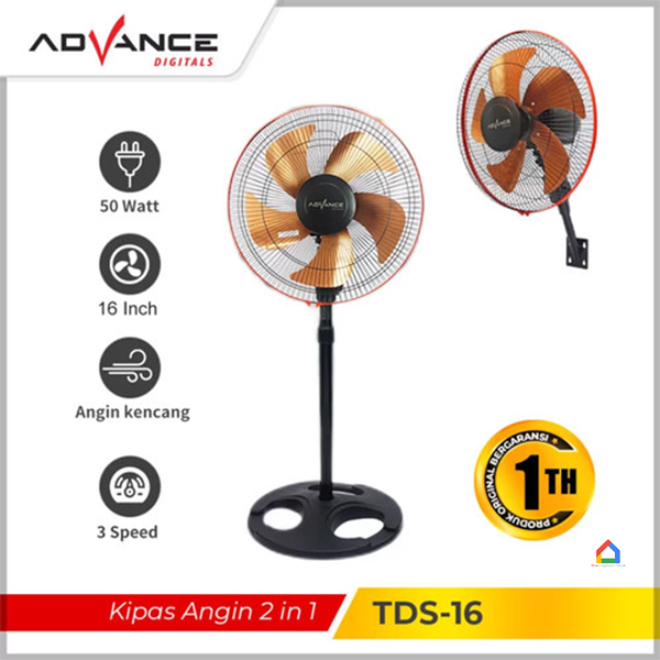 Kipas Angin Advance Berdiri TDS-16 (2 in 1) Baling-baling 5 / Advance TDS16 Berdiri dan Dinding [16 inch]
