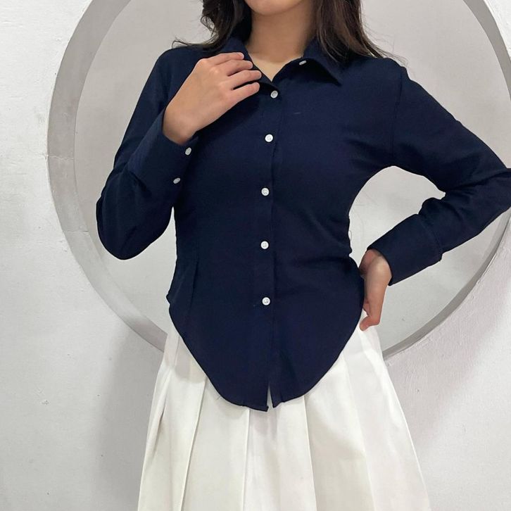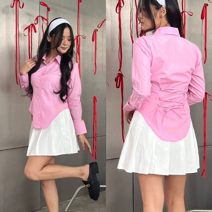 Missie - Selena Kemeja Blose wanita Slim Fit Long Sleeve tali belakang