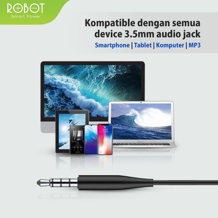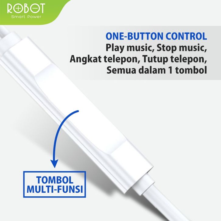 ROBOT Wired Headset Earphone Bass Kabel Audio Jack Smartphone RE10 Original - Garansi 1 Tahun