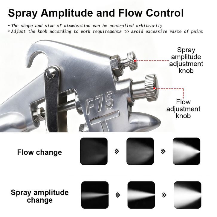 Air Spray Gun F75/F2 Gravity Feed Pneumatic Paint Sprayer- Desain Tangki Atas Menghemat Penggunaan Cat hingga Max, Rama