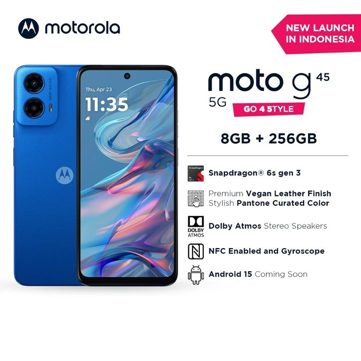 Smartphone Handphone Motorola G45 5G 8/256GB Up to 16GB Extended RAM Snapdragon 6s Gen 3 Layar 6.5 inch