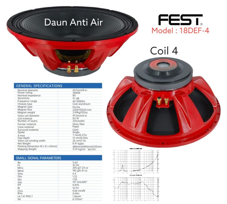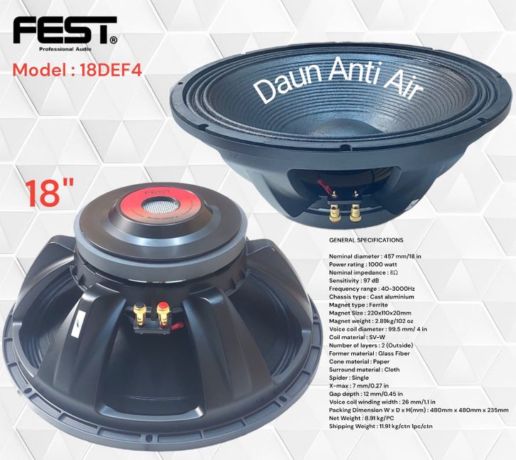 Speaker 18 In Fest 18DEF4 Original 18 inch Komponent FEST 18DEF VC 4 INCH