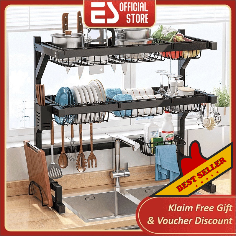 ES Rak Dapur Stainless Hitam Rak Wastafel Rak Piring & Peralatan Dapur Kokoh Kuat Dengan 2 UKURAN