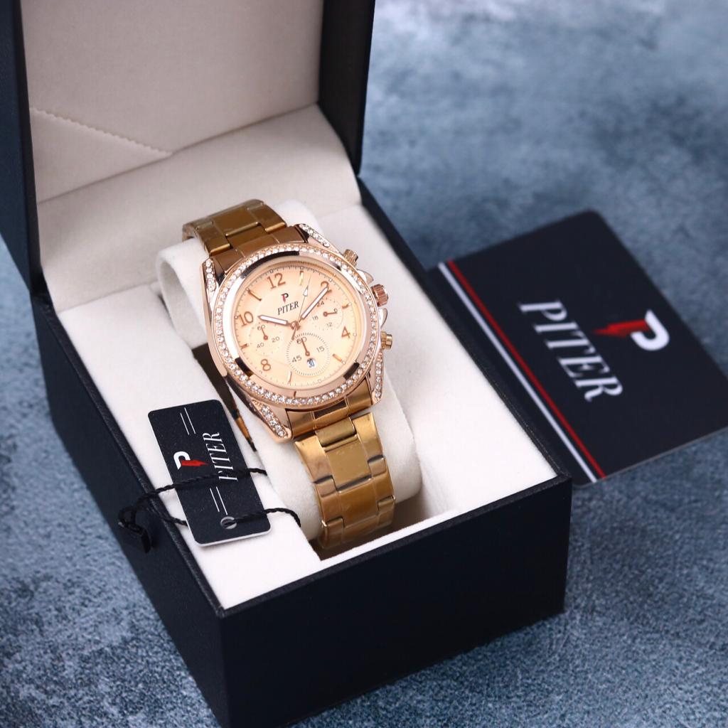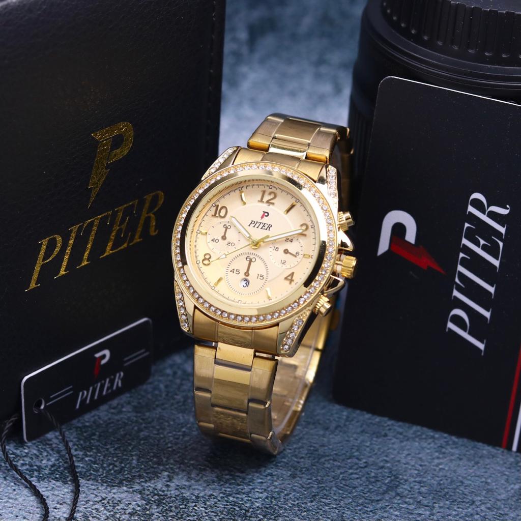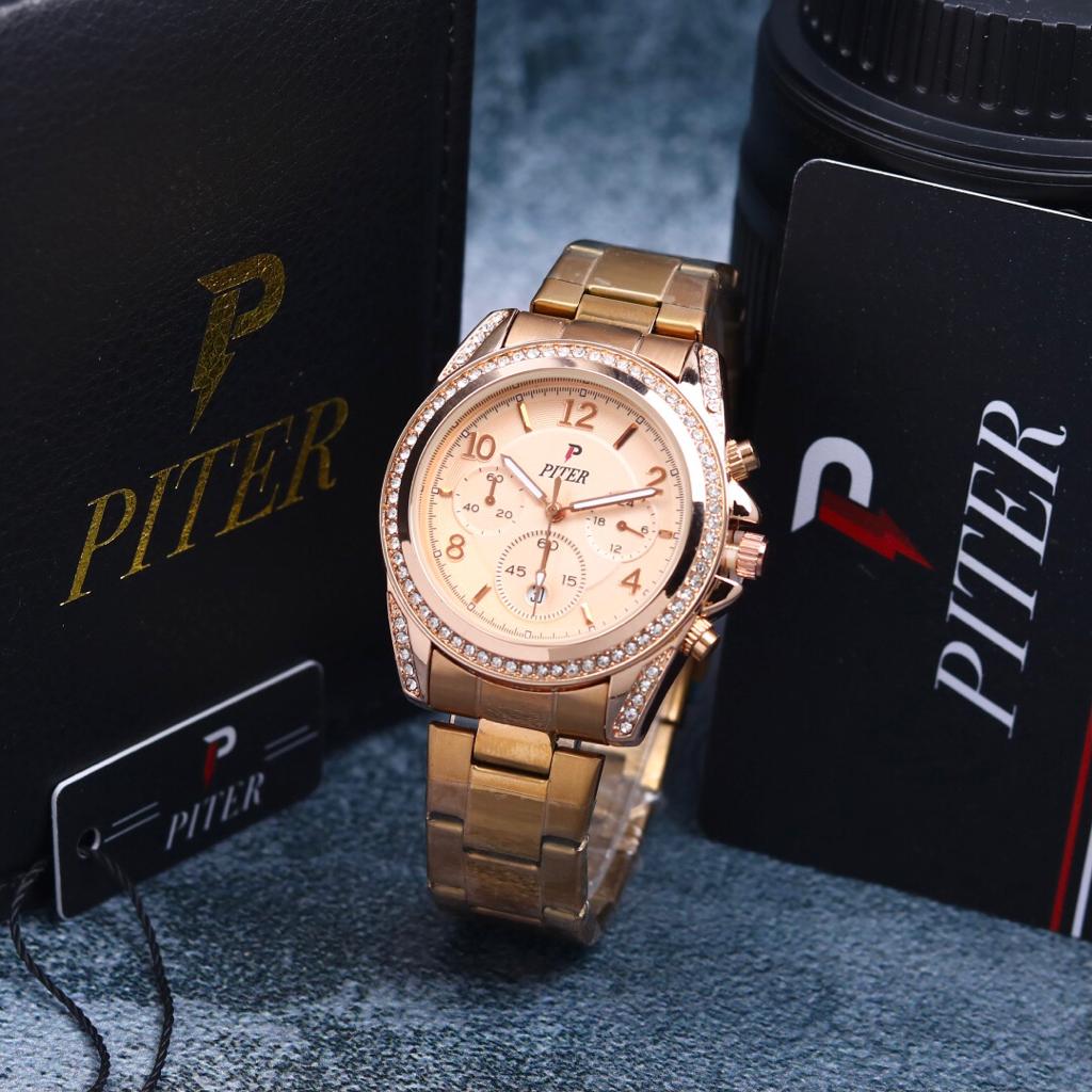Promo - Terbaru Jam Tangan Wanita Piter Original P6112YU Tanggal Tali Rantai Free Box Original & Kartu Garansi