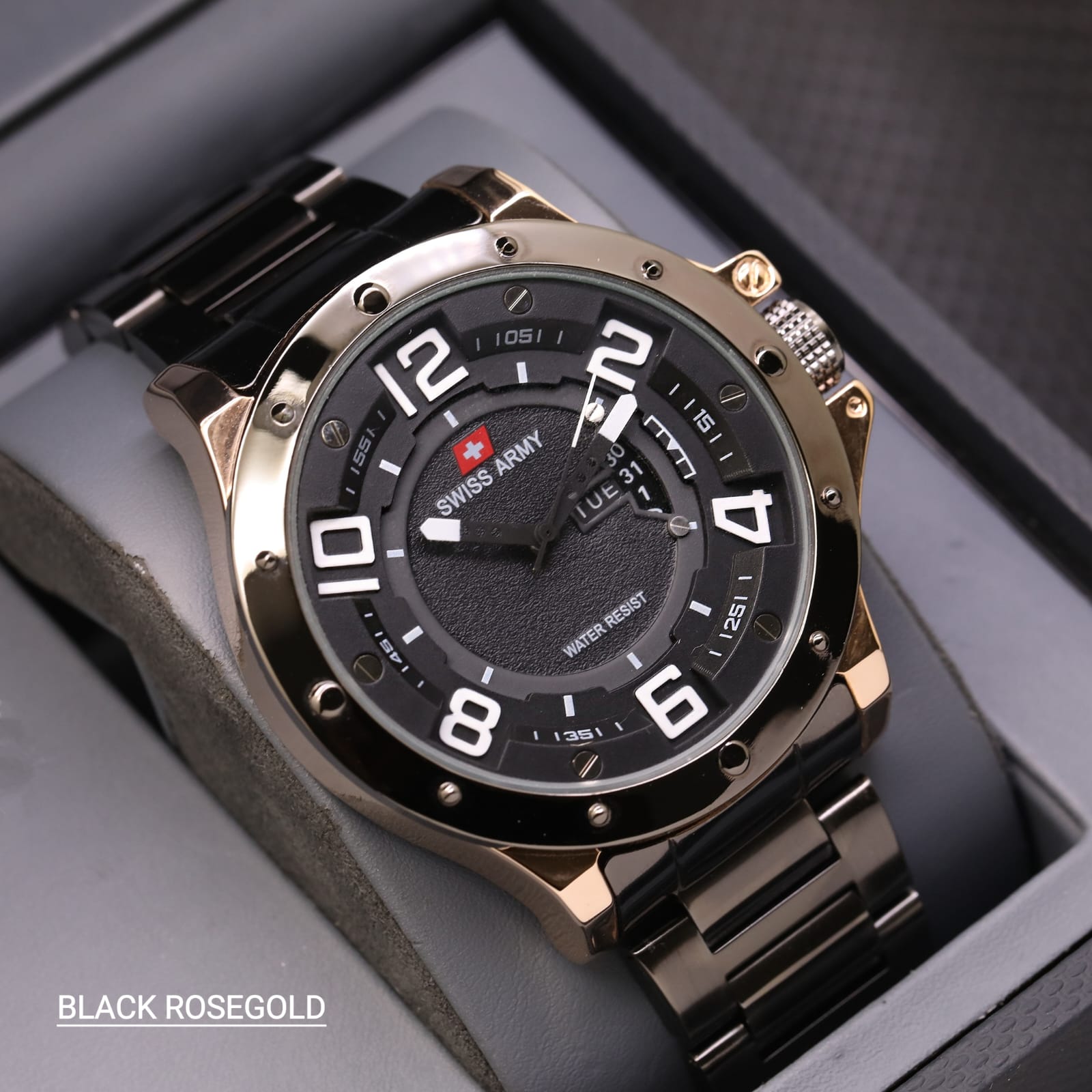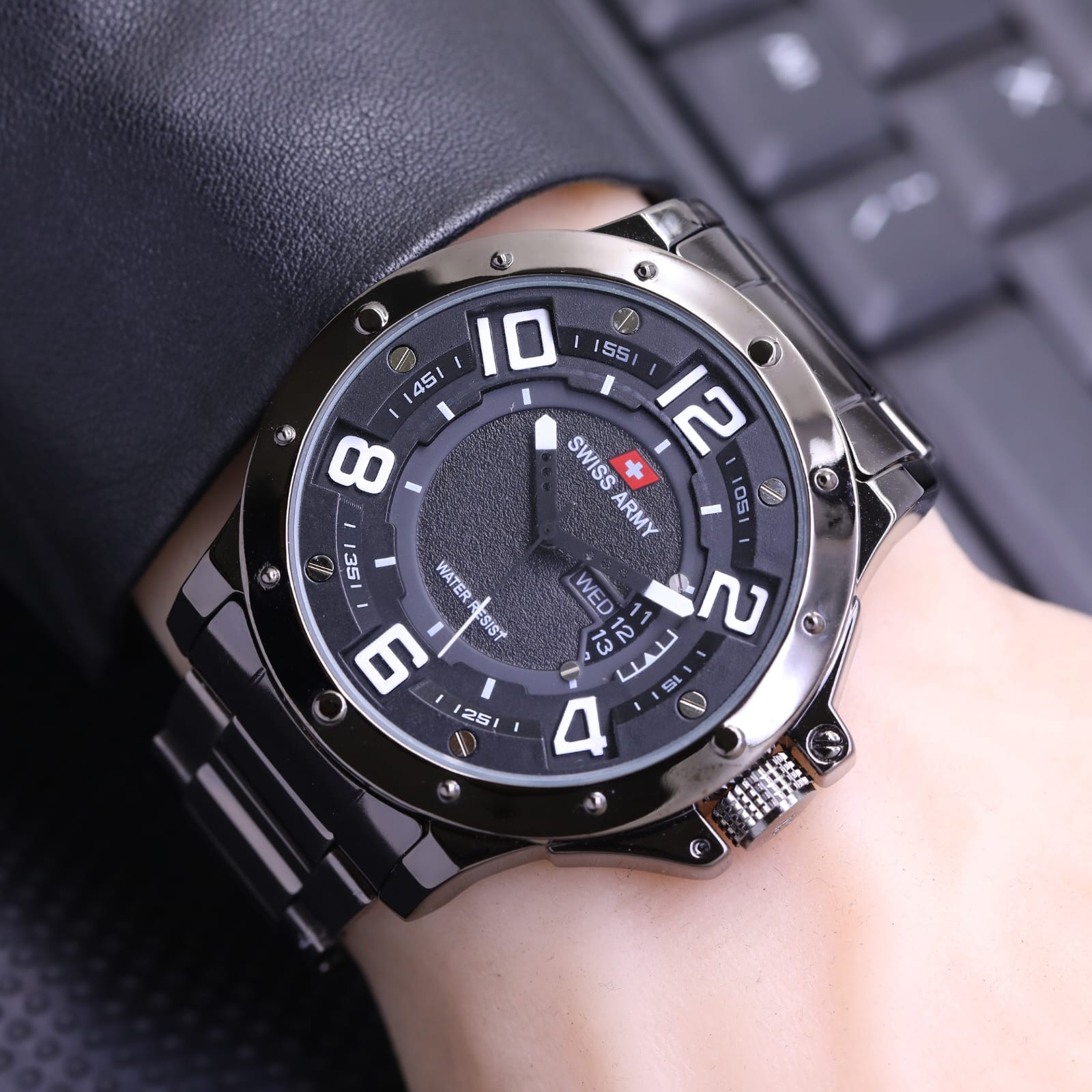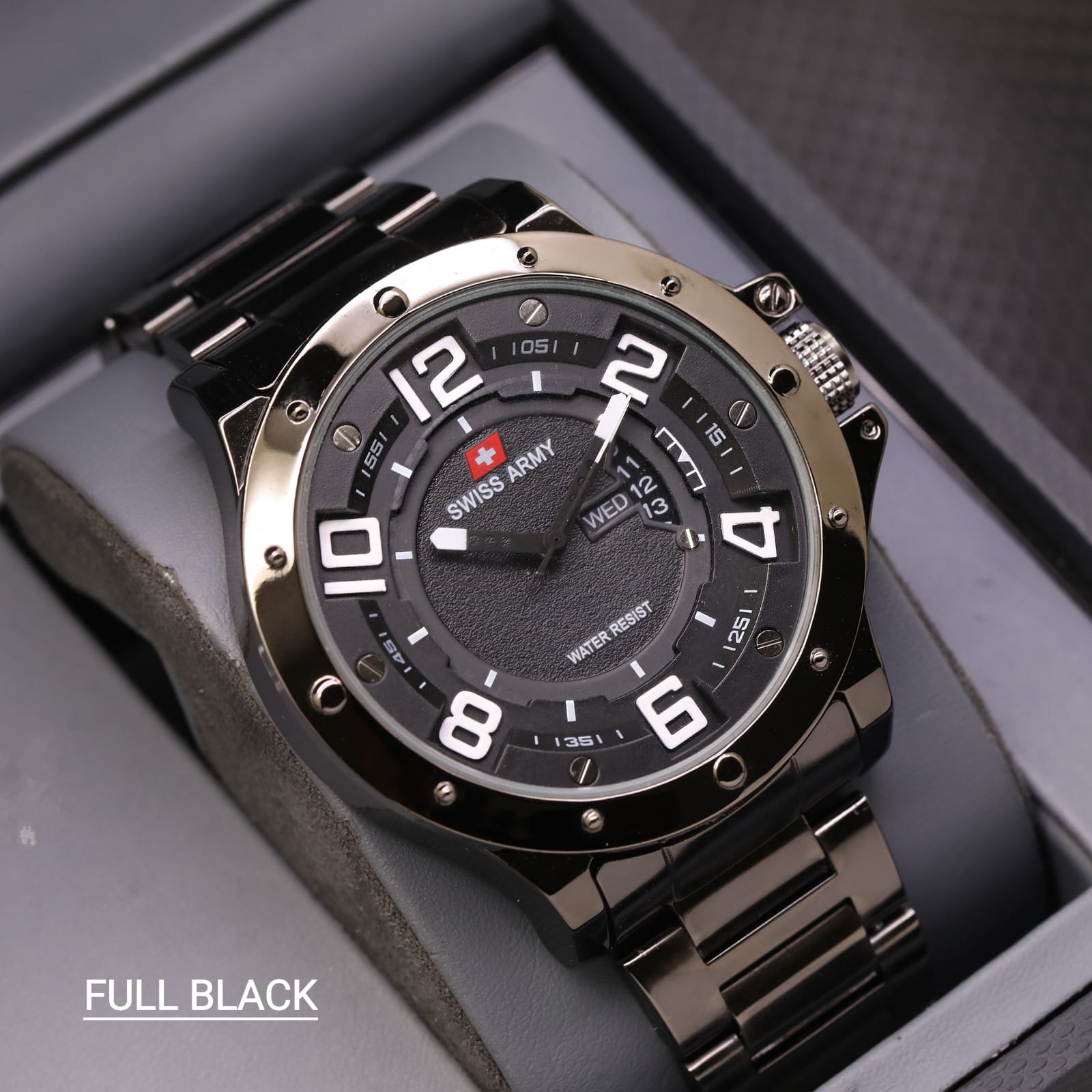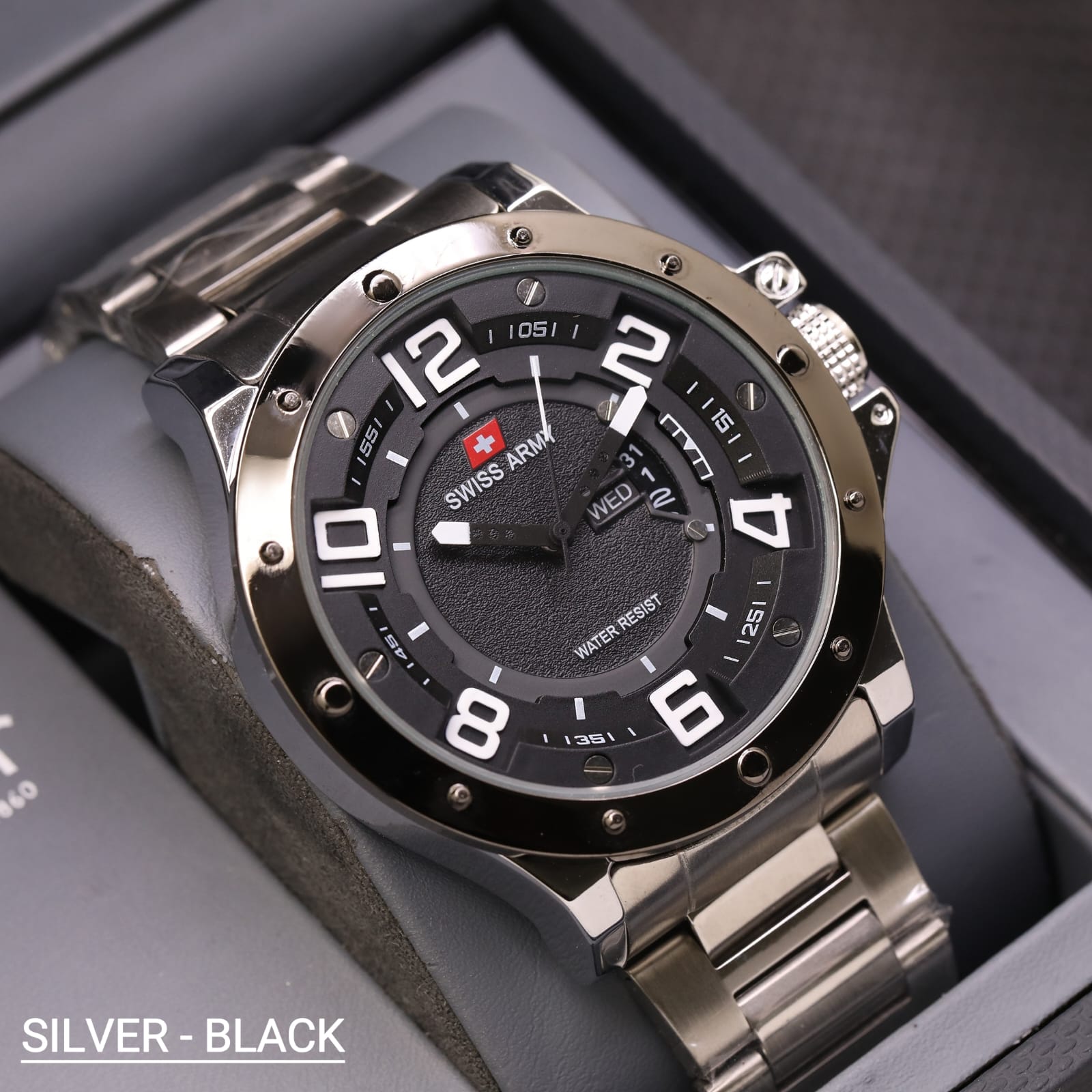 Promo - Jam Tangan Pria Swiss Army SA3756TL Tanggal Hari Aktif Tali Rantai Free Box & Baterai Cadangan