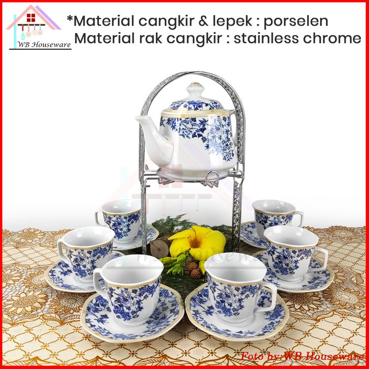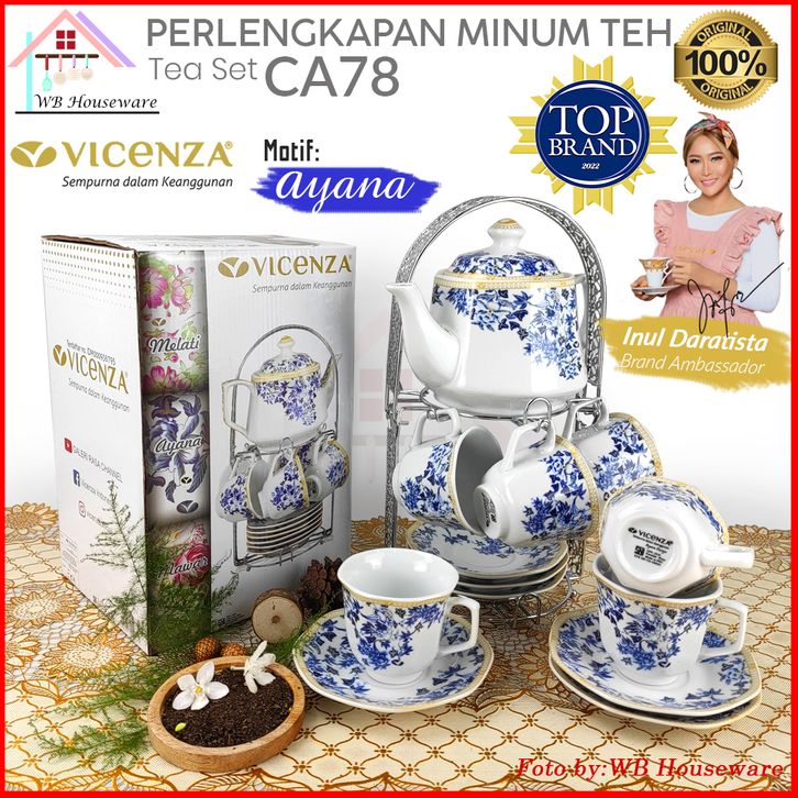 VICENZA Tea set porcelain perangkat minum motif ayana / cangkir set + teko+ rak / coffee set CA-78