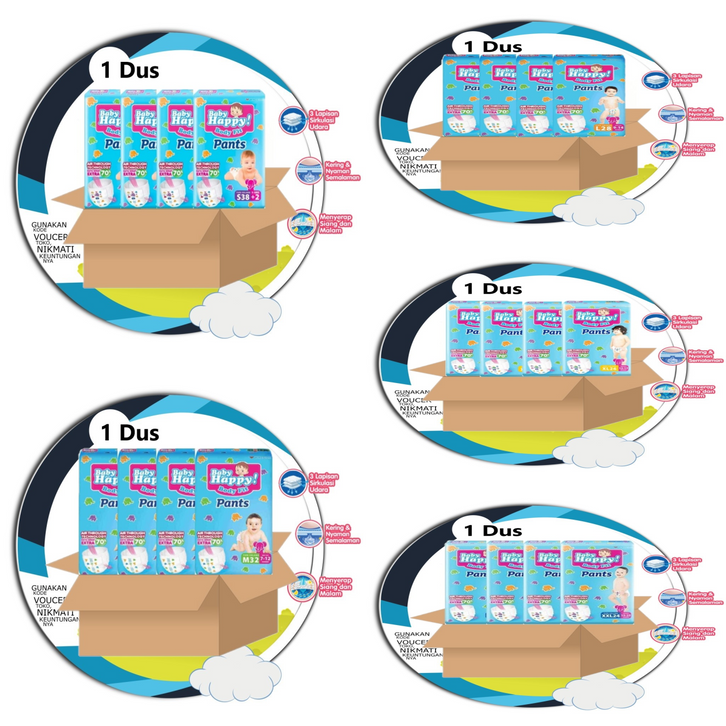 [1DUS 4BAL] Baby Happy Pants S38+2 M32 L28 XL26 XXL24 Popok Bayi Celana Sekali Pakai
