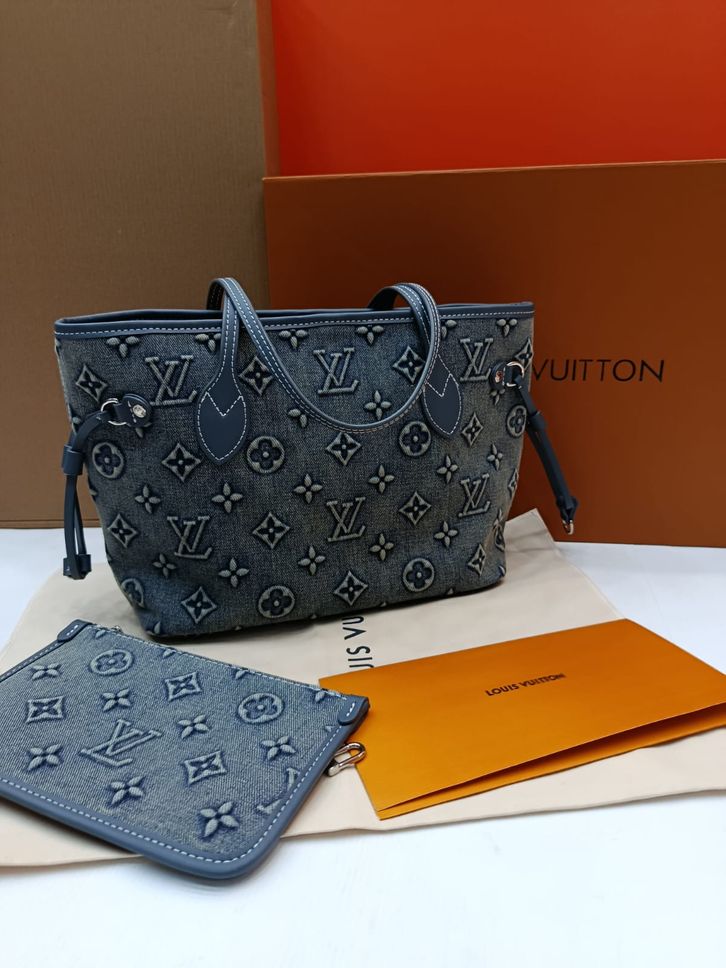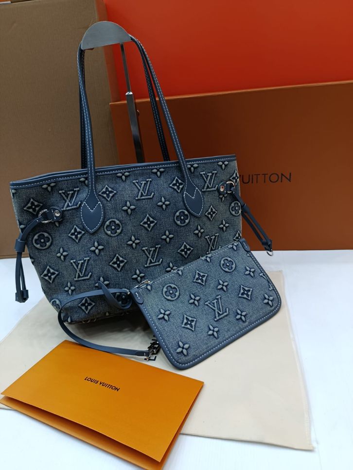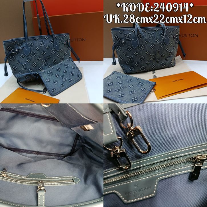 TAS WANITA LV NEVERFULL DENIM MIRROR VVIP/TAS ELPONG TOTE 28CM/TOTEBAG TAS BRANDED TERBARU