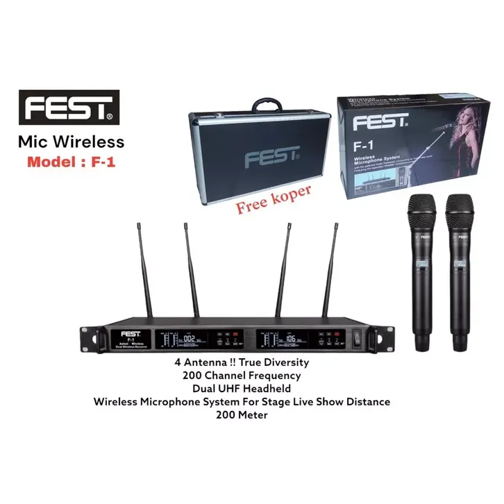 Mic Wireless FEST F1 F 1 ORIGINAL JARAK 200M FOR LIVE STAGE PERFORMAN