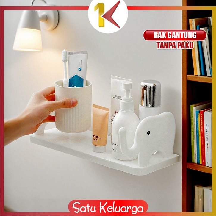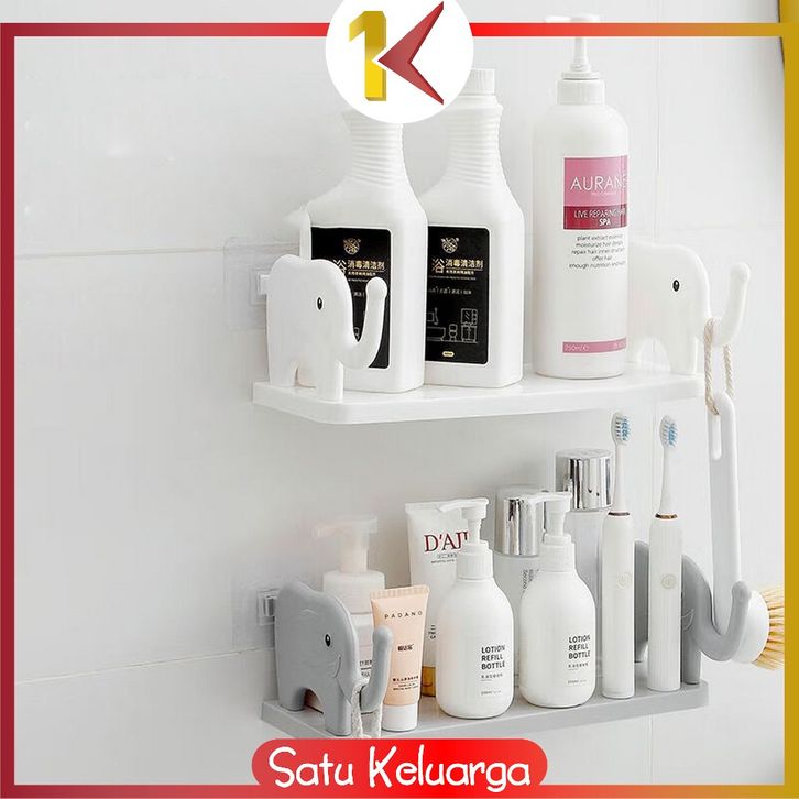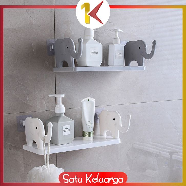 SK-C864 Rak Dinding Tempel Kamar Mandi Motif Gajah Tanpa Paku Serbaguna / Rak Dapur dengan Gantungan / Rak Gantung