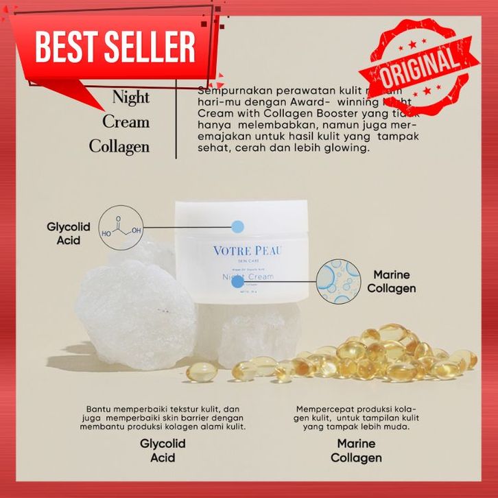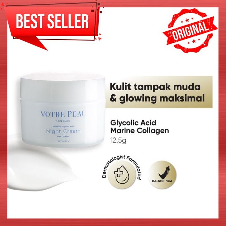 Votre Peau Collagen Booster Night Cream 30gr - Kulit Cerah Glowing dan Tampak Lebih Muda