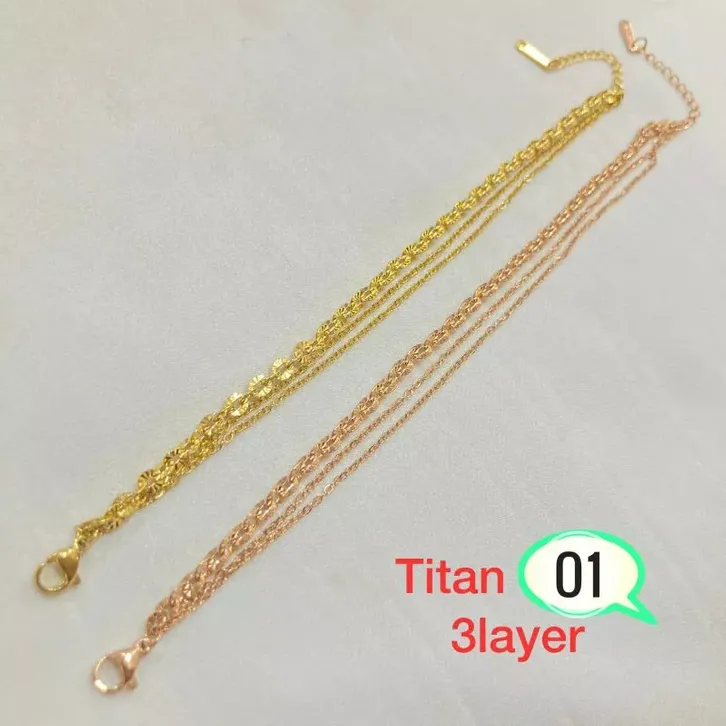 Gelang Tangan Rantai 3 Layer Dewasa Titanium N22082201