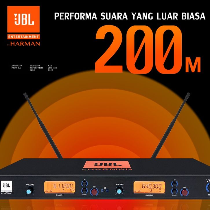 JBL VM-500 wireless microphone Mikrofon nirkabel mic Jangkauan penerimaan dalam jarak 200 meter MIKE logam
