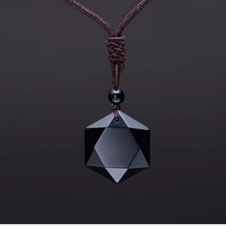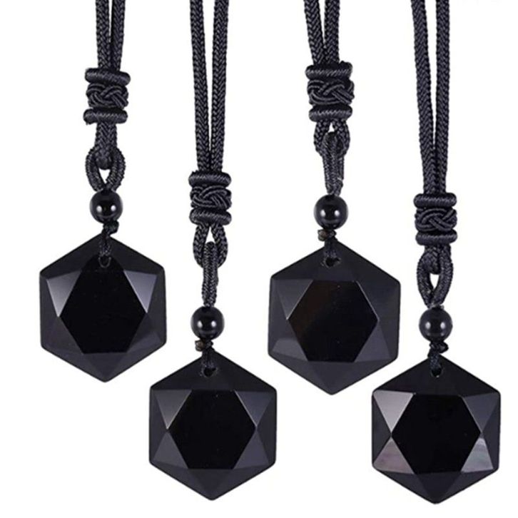 Black Obsidian Six Stars Lucky Amulet Love Natural Stone Pendant Necklace Love Crystal Pendulum Jewelry