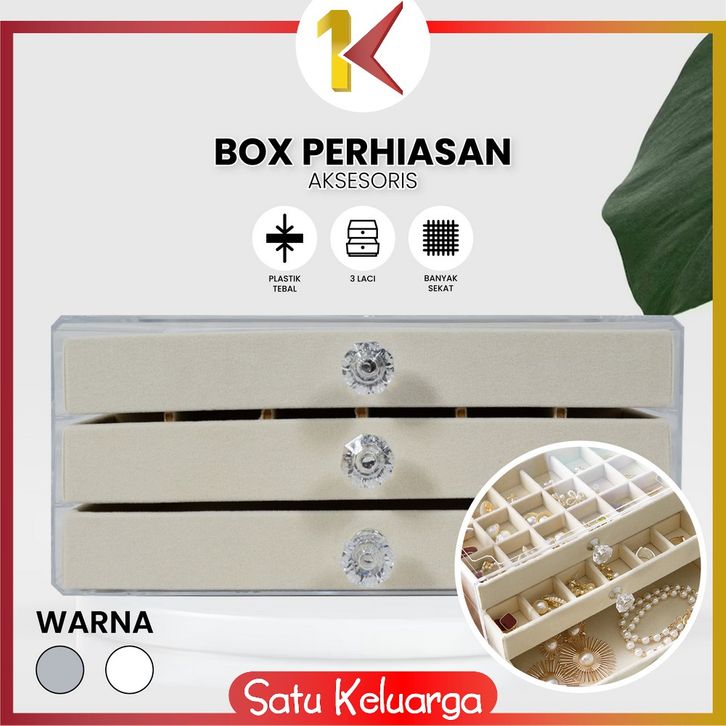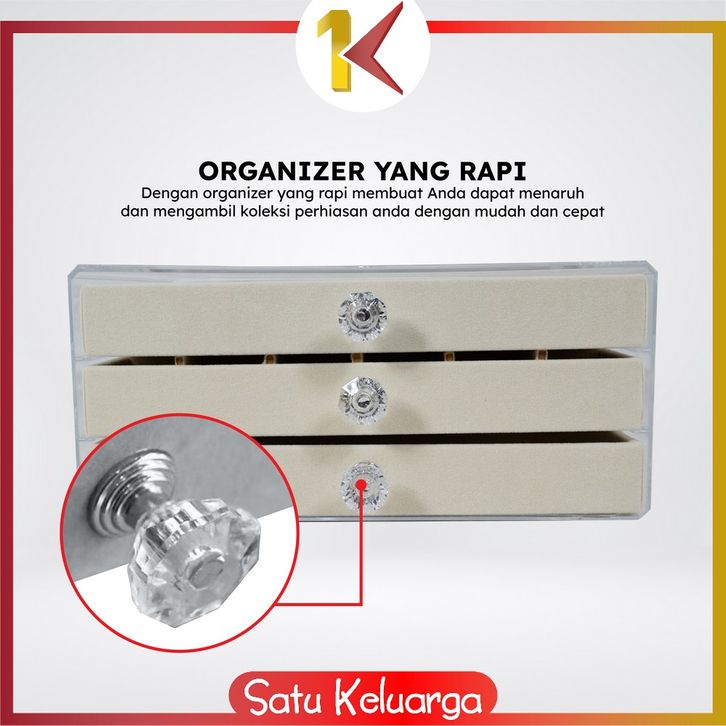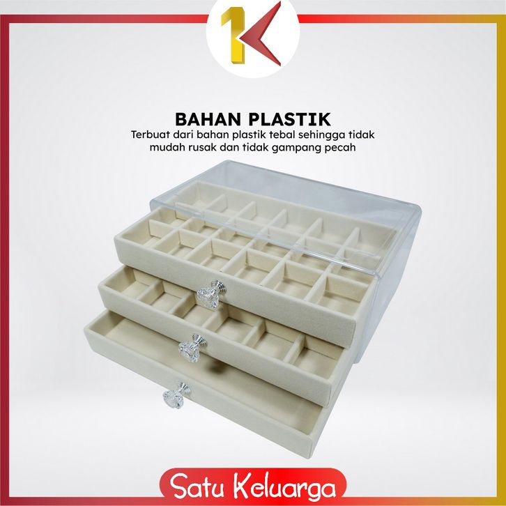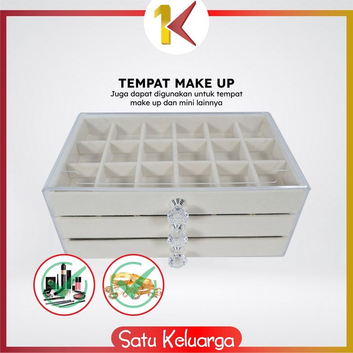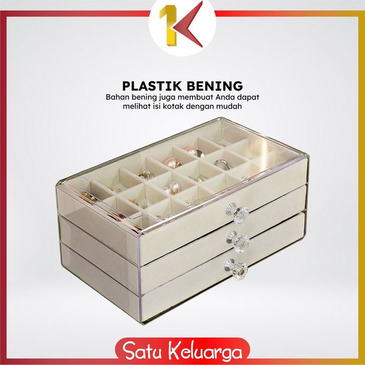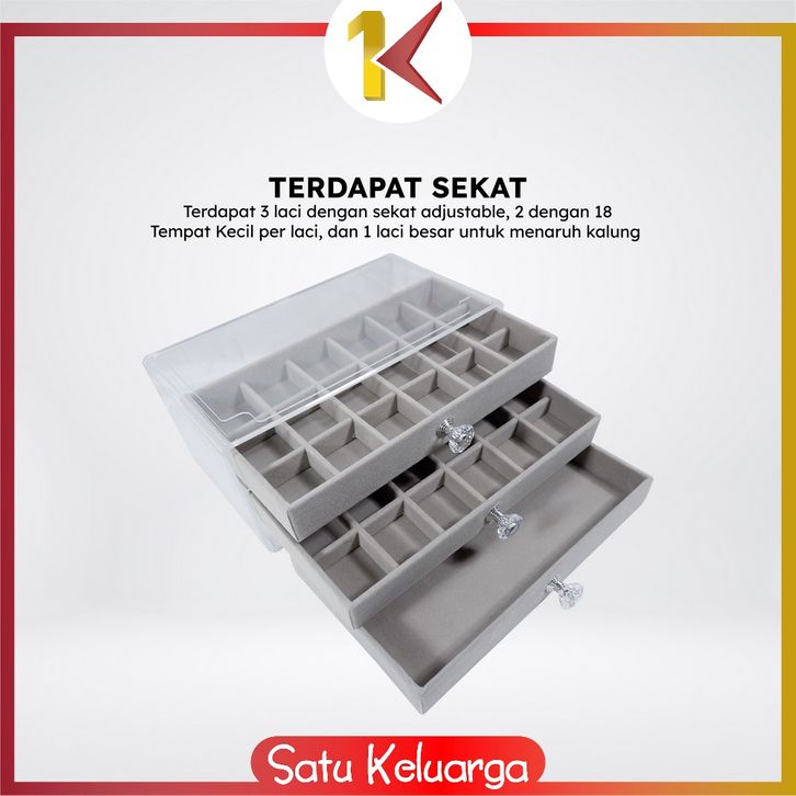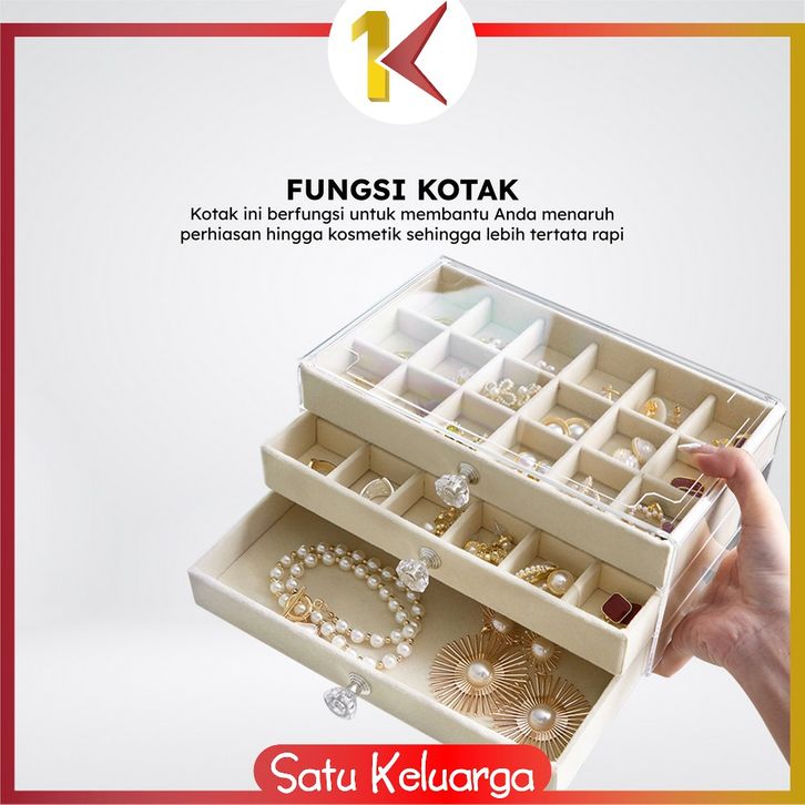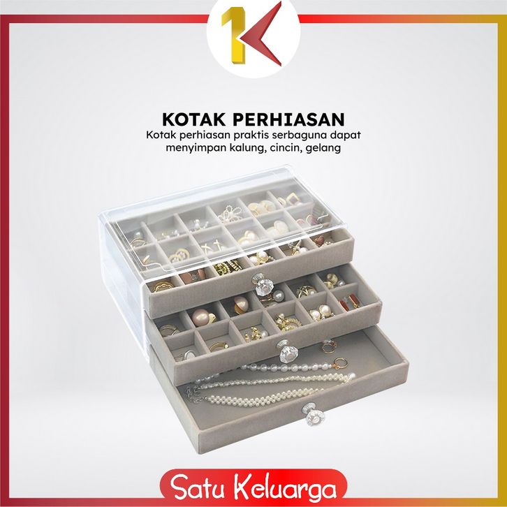 SK-K148 Kotak Perhiasan Wanita 3 Laci Jewelry Box dengan Sekat Serbaguna / Tempat Penyimpanan Cincin Kalung Anting Multi
