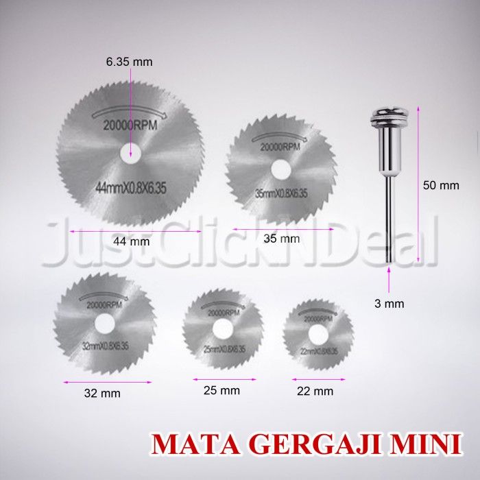 Mata Potong Bor Mini Grinder 6 pcs HSS Round Saw Blades